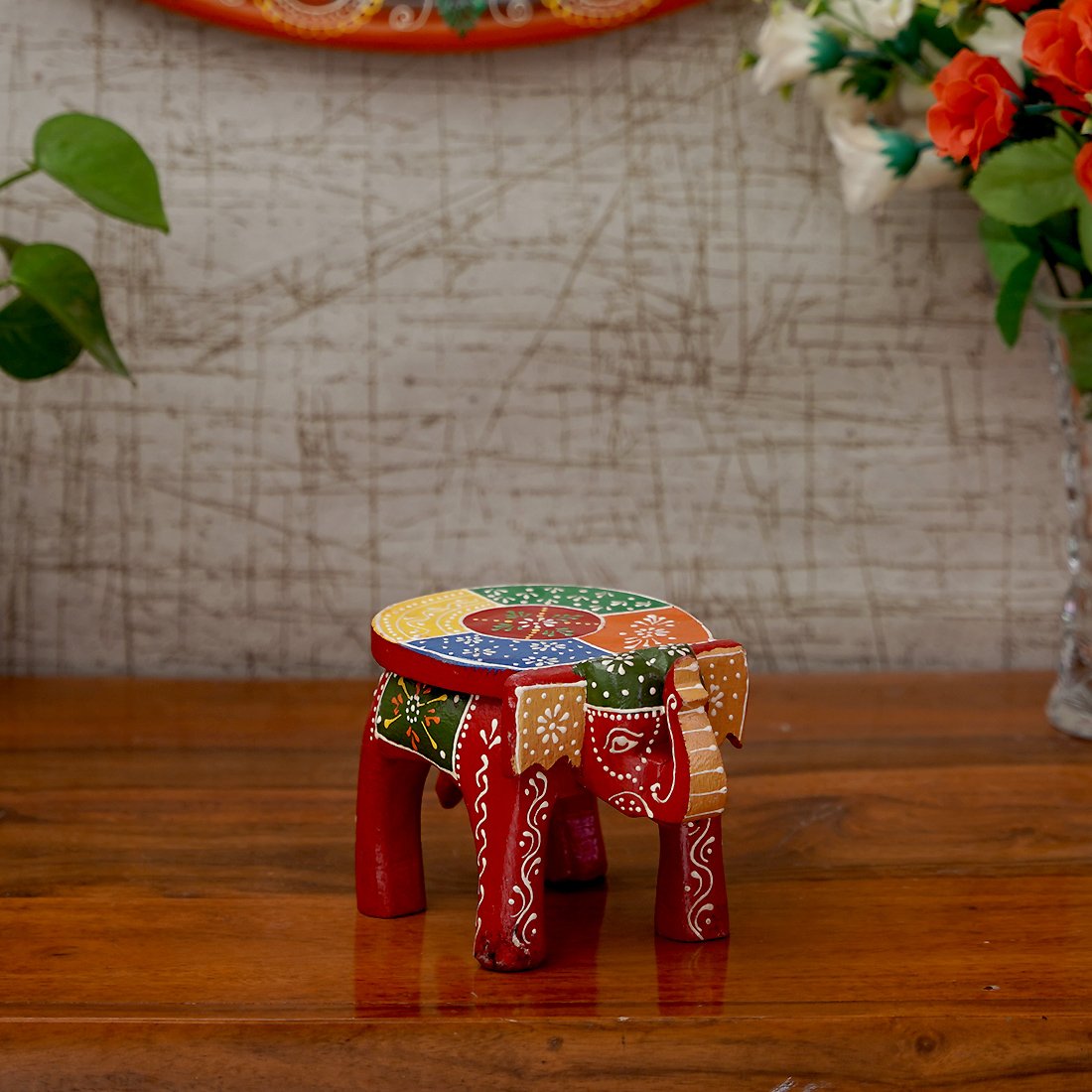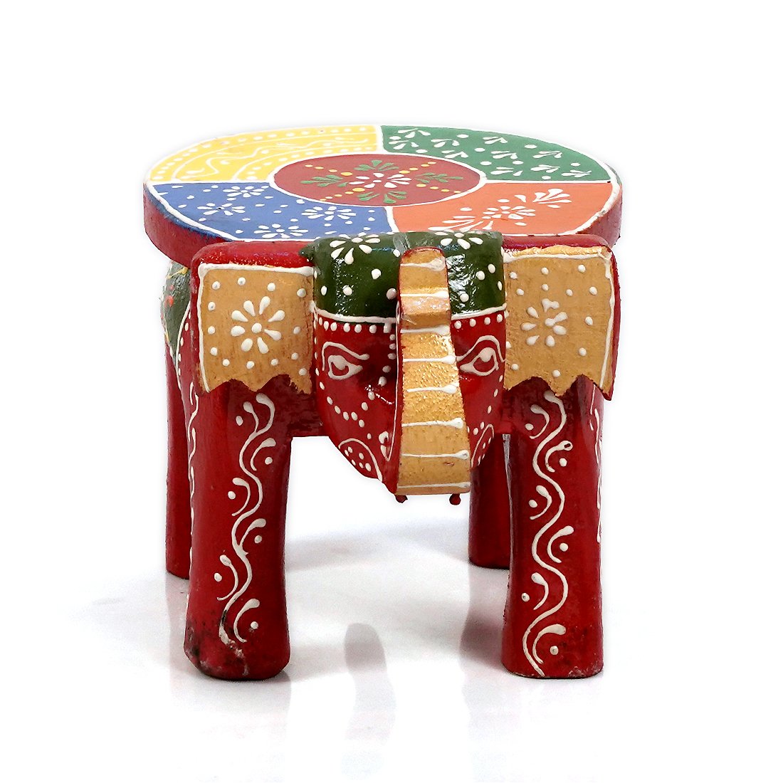 Craft Tree Wooden Handpainted Decorative 6'' Elephant Stool Showpiece in Redcolor
