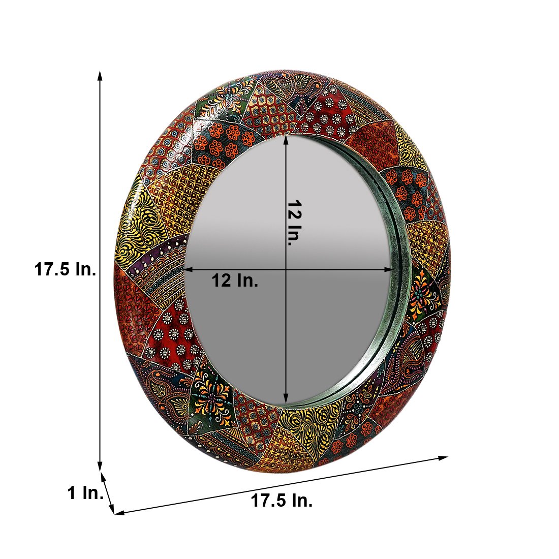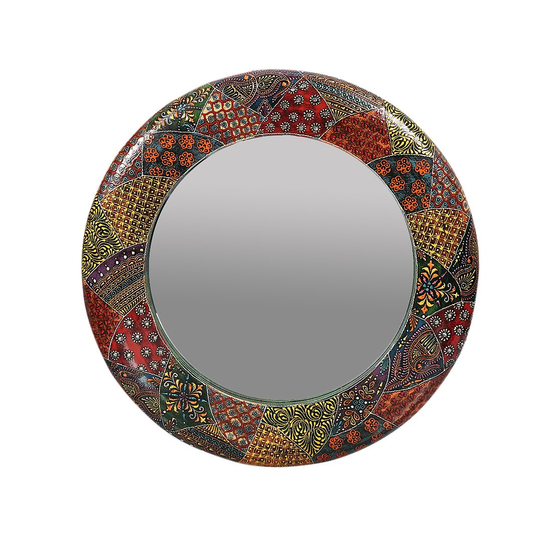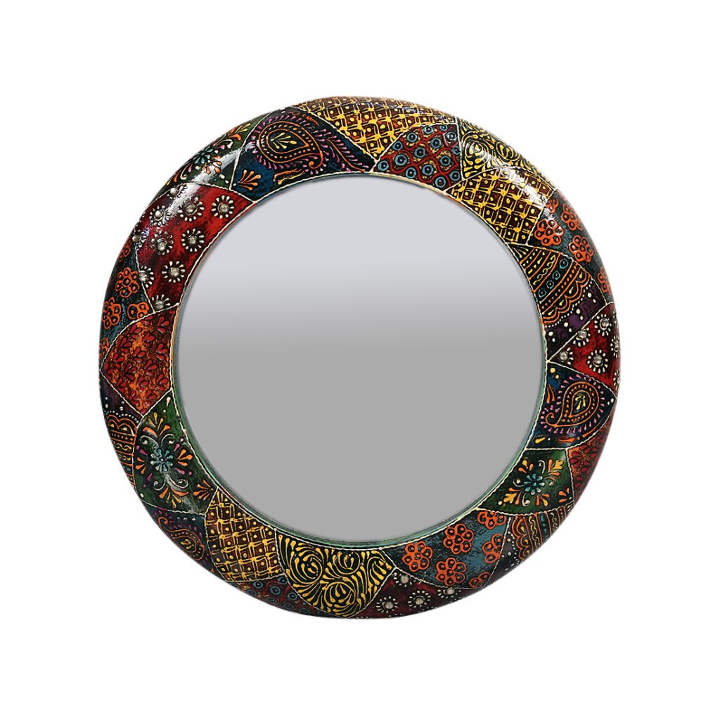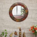 Craft Tree Wooden Handpainted Decorative Wall Hanging Round Mirror Showpiece in blackcolor