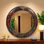 Craft Tree Wooden Handpainted Decorative Wall Hanging Round Mirror Showpiece in blackcolor
