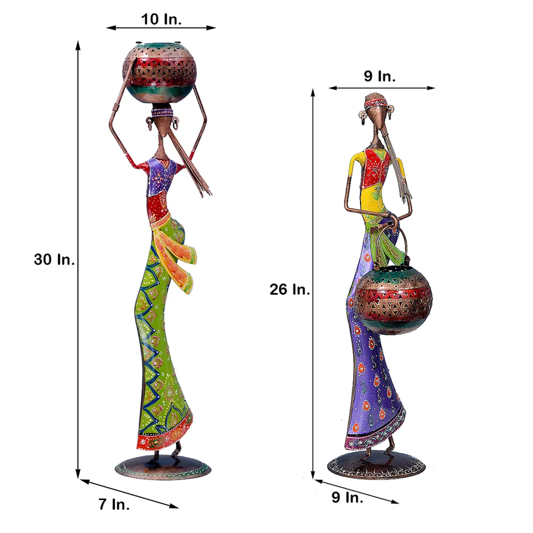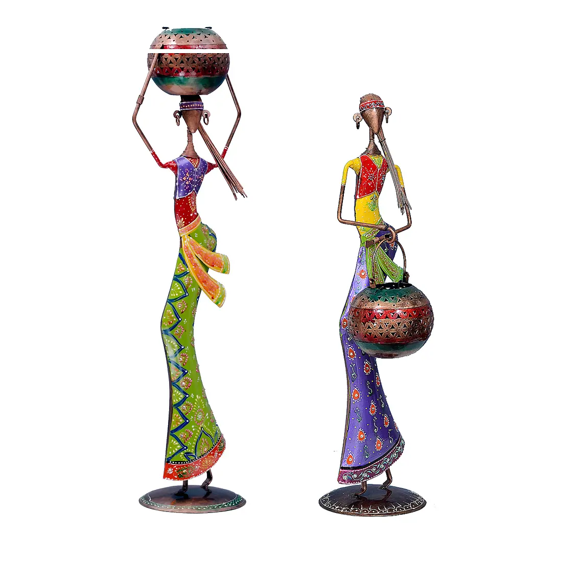 Decorative Lady (Set of 2) Iron Human Figurine With Inbuilt Tealight Holder by Craft Tree/Lota Doll
