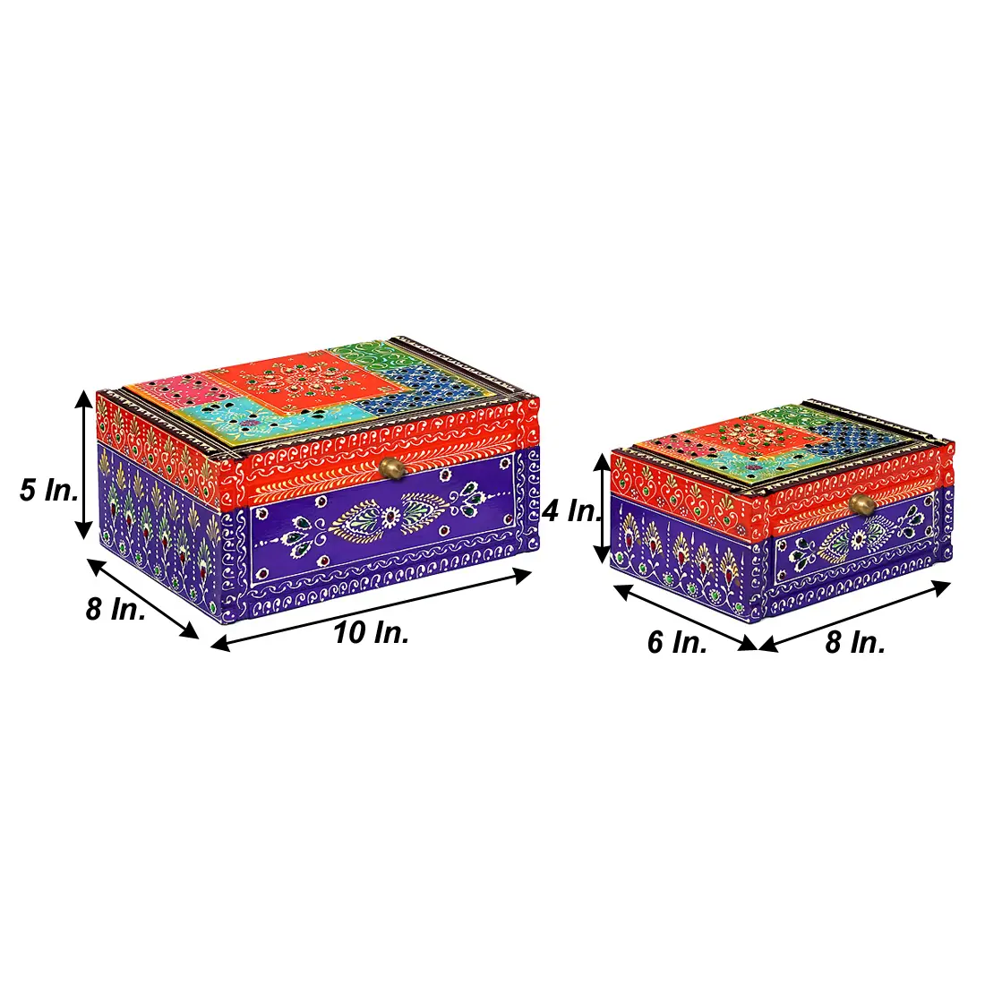 Multicolour MDF Handpainted Trinket Box Set of 2 by Craft Tree